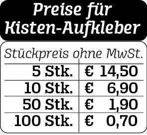 Praktische Aufkleber zur Beschriftung der Kisten auf dem
