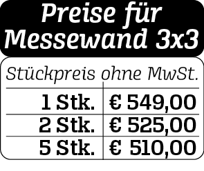 Hochwertige Messewand 3 x 3 gerade gefertigt aus 210g Textildisplaystoff