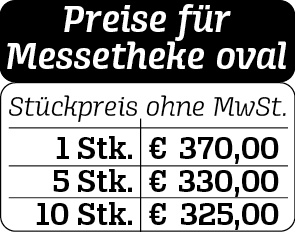 - Leicht auf- und abbaubarer Pop up Messsetheke